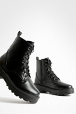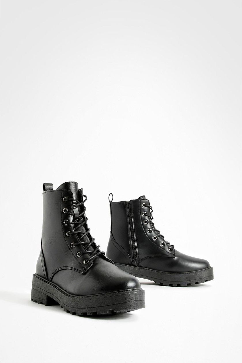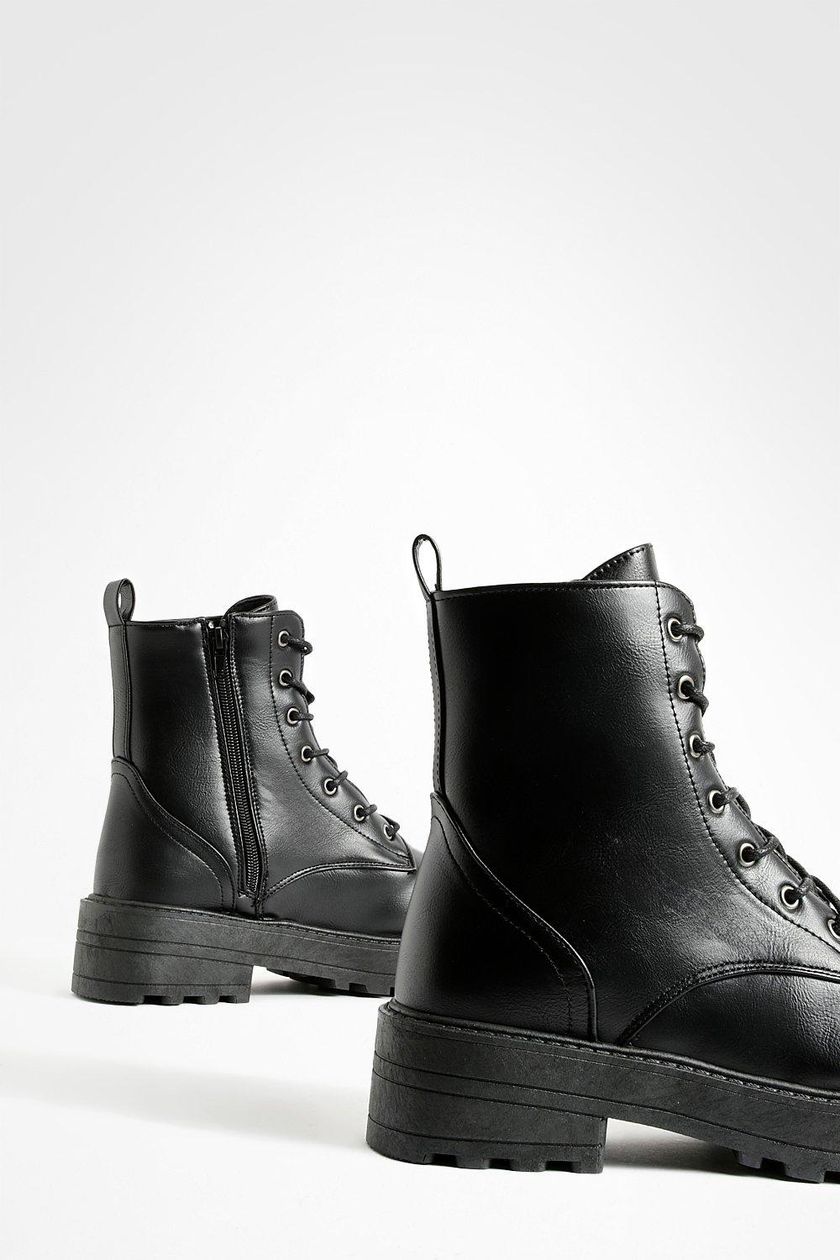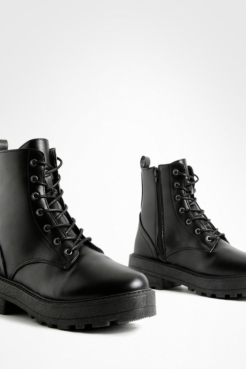 این بوت زنانه یکی از ترندترین و پرطرفدارترین مدل های کفش در فصل های سرد سال است که به سبک بوت های رزمی ( Combat Boots) طراحی شده است. رنگ کاملا مشکی، زیره ضخیم و لژدار و طراحی بندی، ظاهر گرنج (Grunge) و قدرتمند به استایل شما می بخشد. این بوت، تریکبی عالی از مد روز، راختی و دوام را ارائه می دهد.