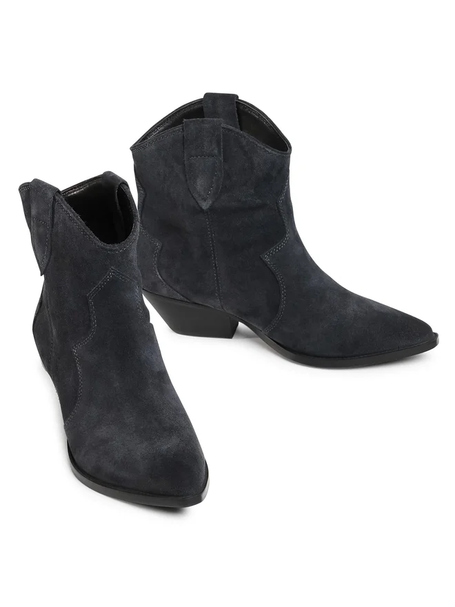 با این نیم بوت کابوی جیر زنانه، استایلی جسورانه و در عین حال شیک را تجربه کنید. طرح کلاسیک وسترن (Cowboy) که همیشه جذابیت خود را حفظ کرده، در این مدل با ظرافت و مدرنیته ترکیب شده است.