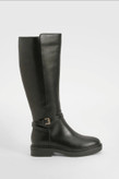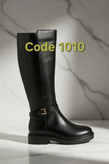 بوت بلند زنانه چرمی مشکی مدل پاشنه تخت کد 1010