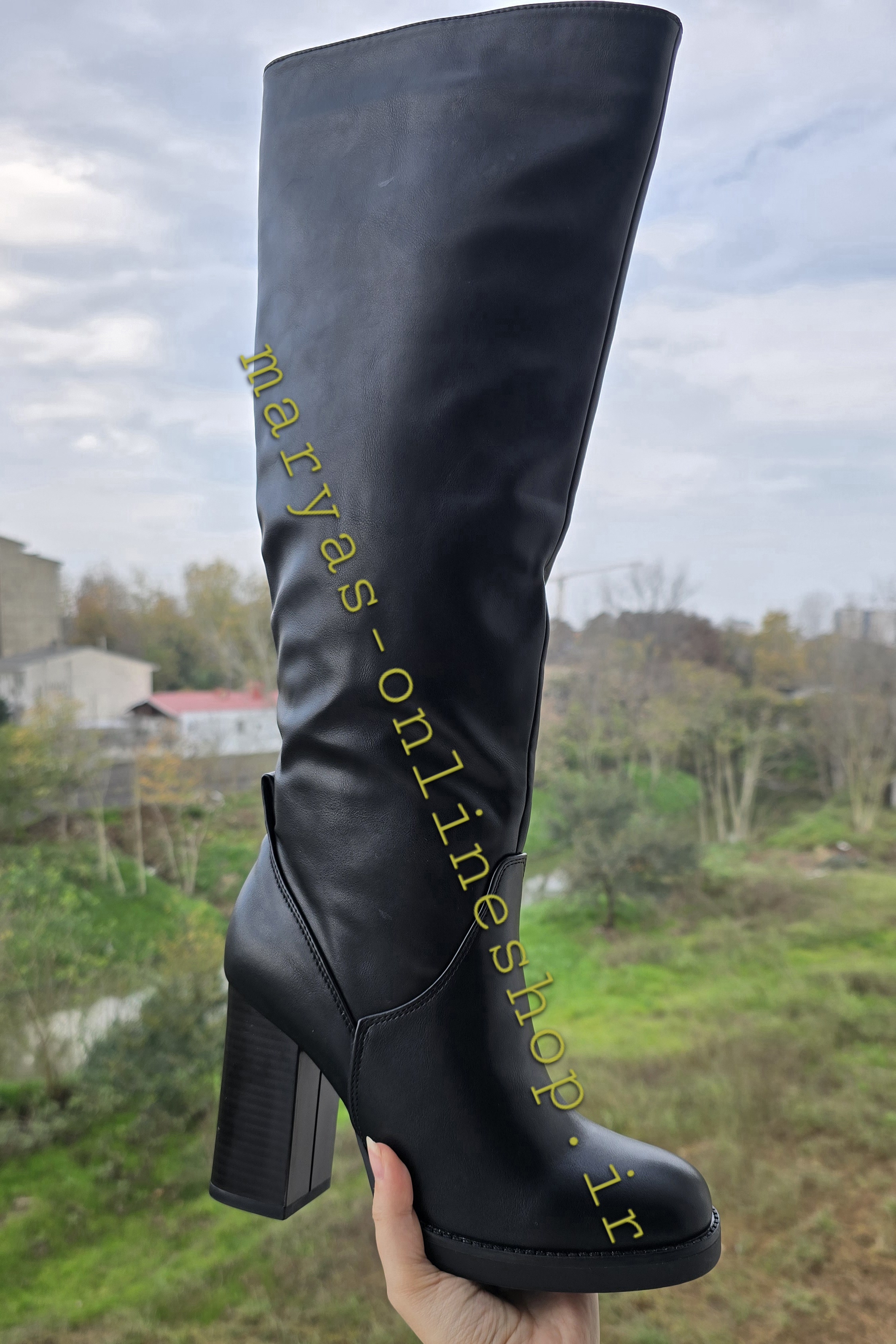 بوت بلند چرم مشکی با جسارت در هر گام قدم بگذارید و فرمانروایی کنید.