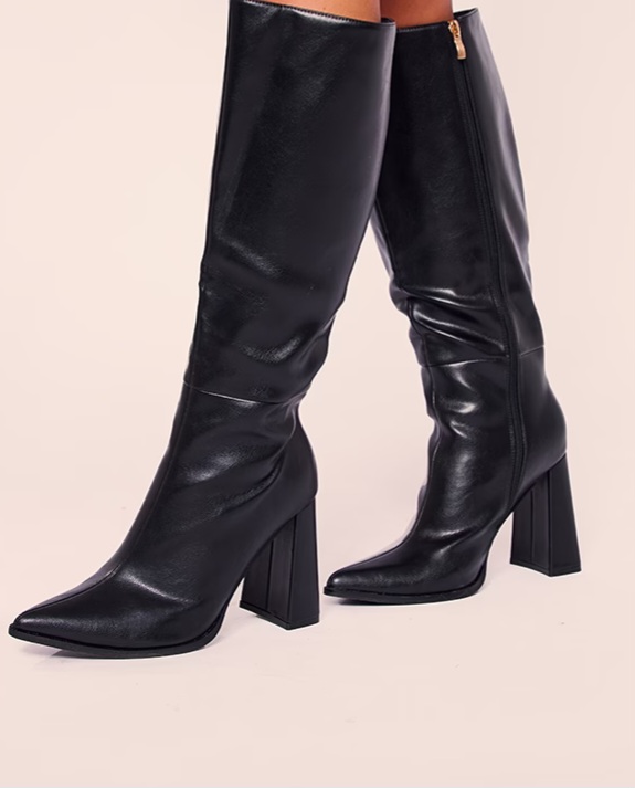 ارتفاع ساق: ساق بوت بلند و کشیده است و تا حدود زیر زانو یا کمی بالاتر می رسد. این ارتفاع کلاسیک، پاها را کشیده تر نشلن می دهد و برای پوشیدن زیر دامن، پیراهن های کوتاه یا شلوار های چسبان (لگینگ و ساپورت) بسیار مناسب است.