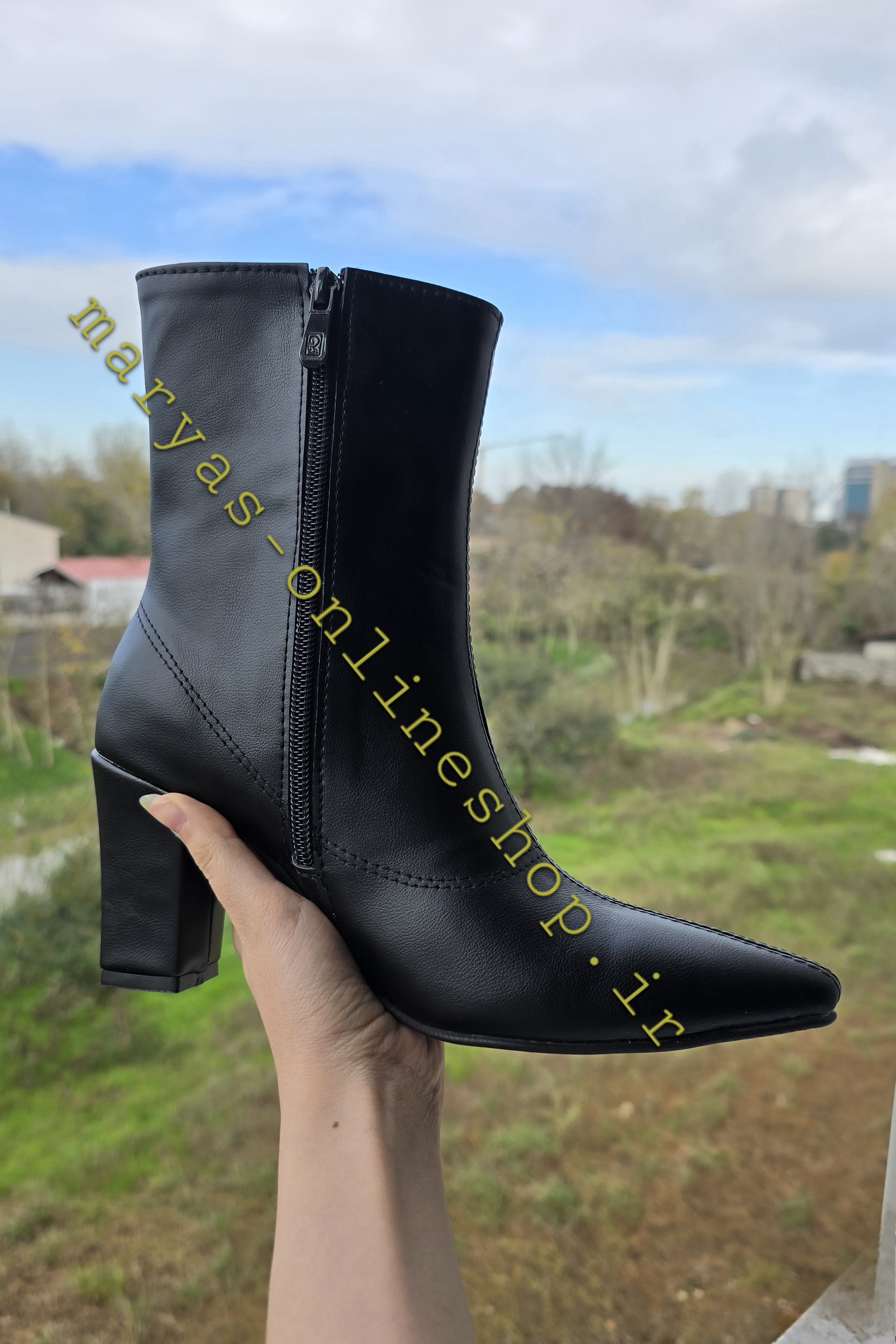 نیم بوت نوک تیز زنانه مشکی کد 1020