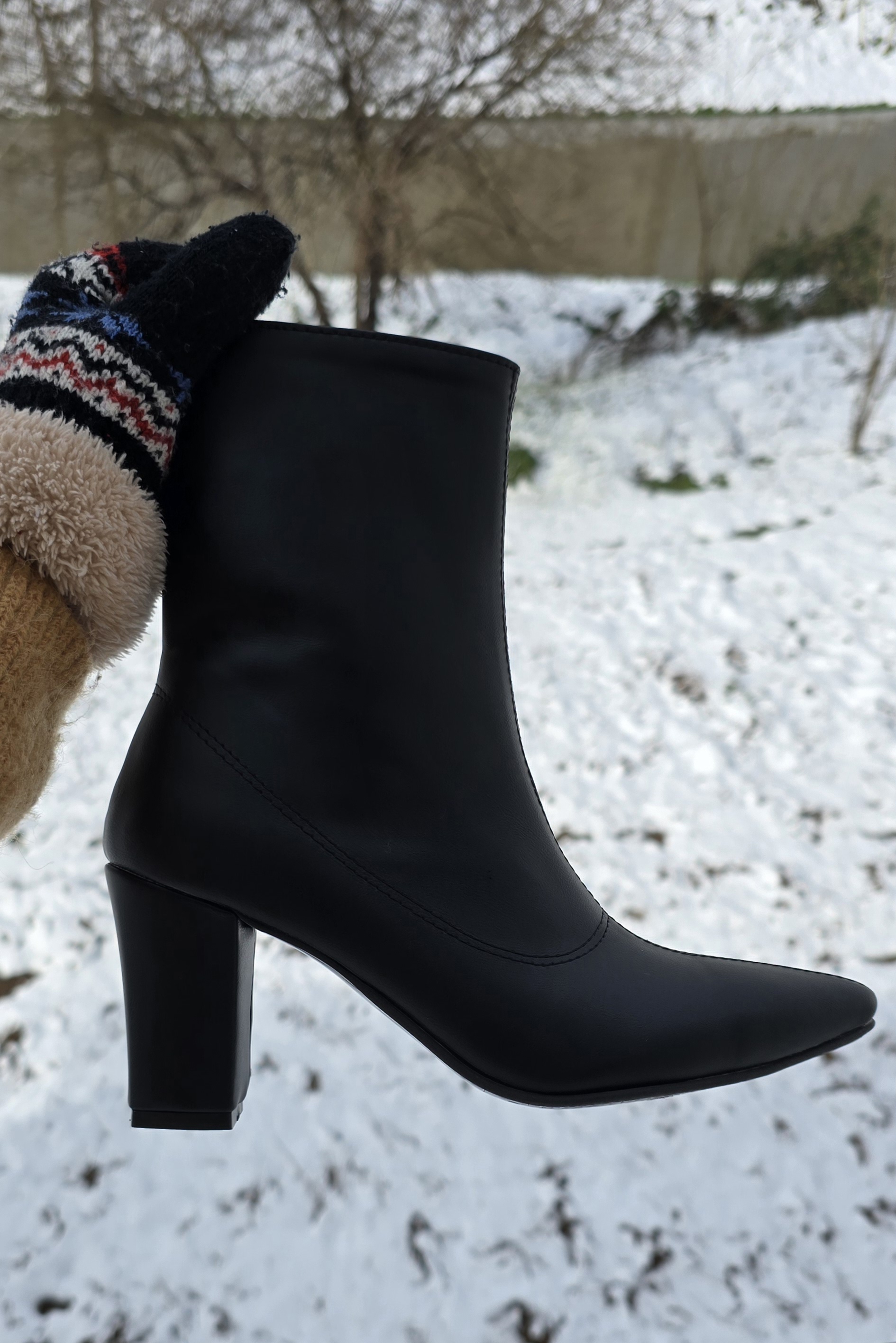 به دلیل پنجه نوک تیز، این بوت با دامن های میدی ( متوسط) و جوراب شلواری ضخیم، ترکیب بسیار شیکی ایجاد می کند.