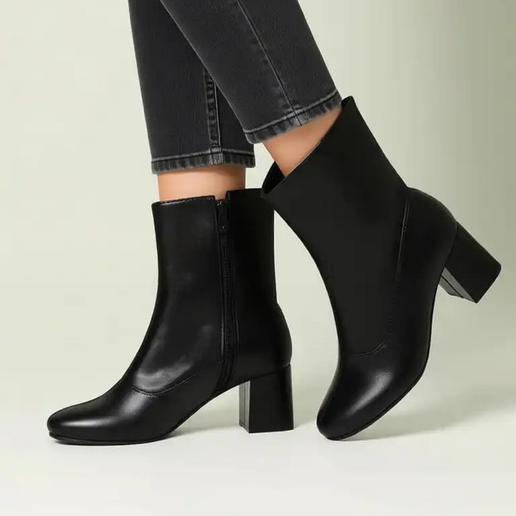 نیم بوت پنجه گرد زنانه مشکی کد 1021، سایزبندی استاندارد بوده و سایز پای خودتونو انتخاب بفرمایید.