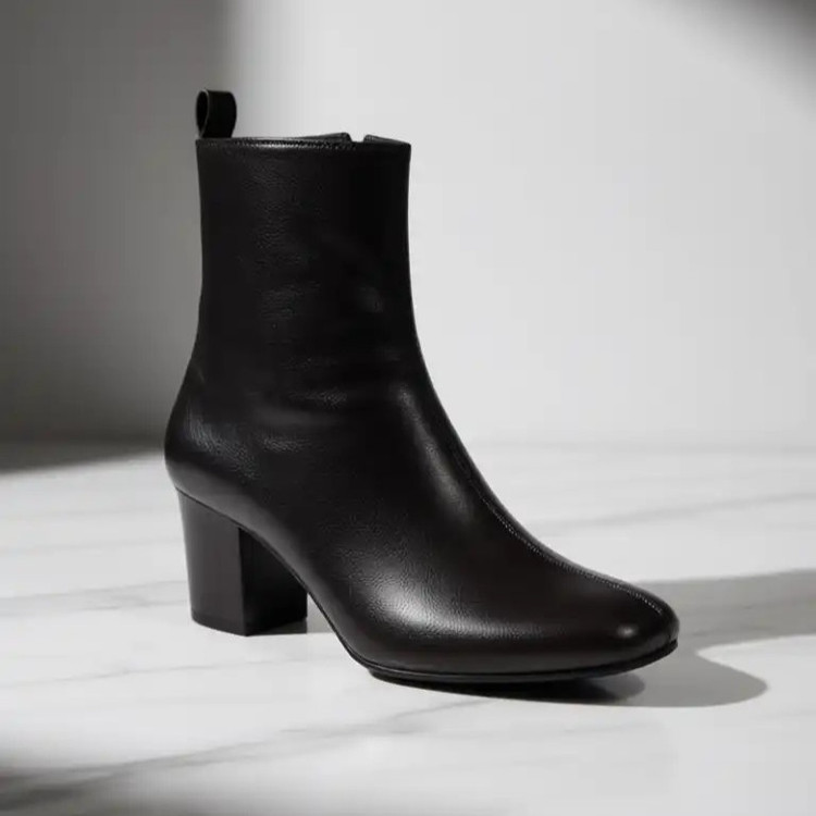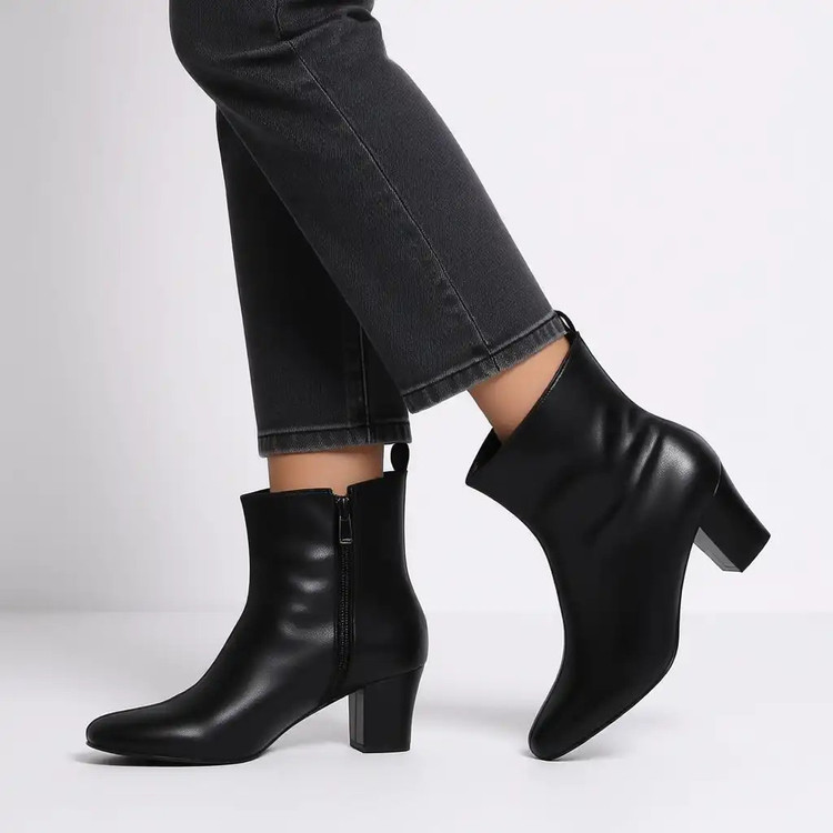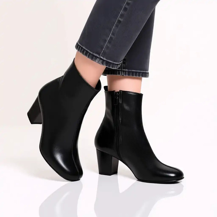 نیم بوت زنانه مشکی پاشنه دار قالب مربعی کد ۱۰۲۵، سایزبندی استاندارد بوده و سایز پای خودتونو انتخاب بفرمایید.