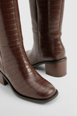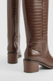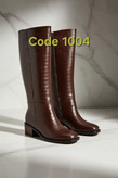 بوت بلند زنانه شکلاتی چرم طرحدار برند بوهو کد 1004